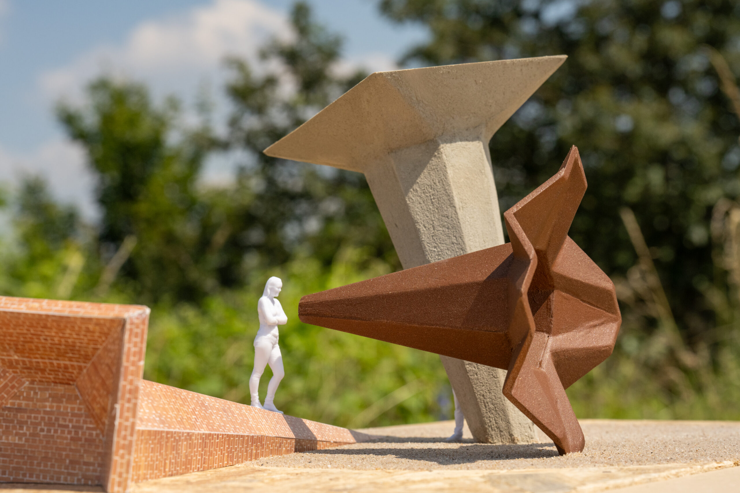 De drie kerktorens van Echoes of a Landscape zijn ondertussen ‘aangekomen’ in Maaseik aan de Klauwenhofweg. De liggende, bakstenen kerktoren van Maaseik-centrum werd in enkele weken gemetst met stenen van Wienerberger, ambachtelijk geproduceerd in Maaseik. De stalen kerktoren van Roosteren werd eveneens aan de oevers van de Maas geproduceerd (omgeving Luik) en kwam toe met een nachtelijk transport. Ook de betonnen kerktoren van Aldeneik werd in twee delen ter plaatse gebracht en gemonteerd. De komende weken wordt de omgeving afgewerkt en verschijnen ook hier educatieve ‘kunstkeien’ en meertalige informatie. Hoe het publiek dit werk kan ontdekken wordt weldra bekendgemaakt.